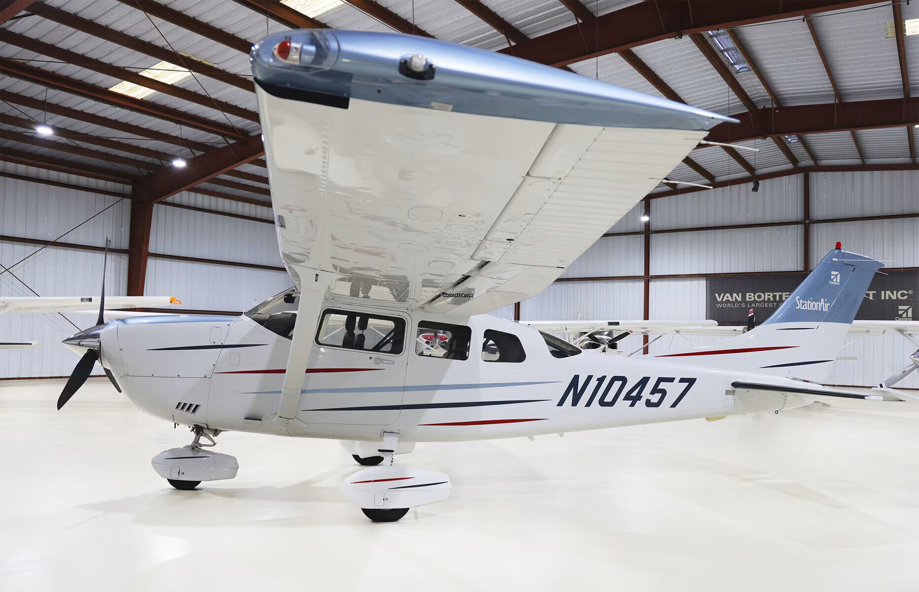 Exterior | Matterhorn White with Blue Metallic #5, Arctic Blue Metallic and Ruby Metallic Stripes, Blue Metallic #5 Tail, Cowling and Wingtips. |
