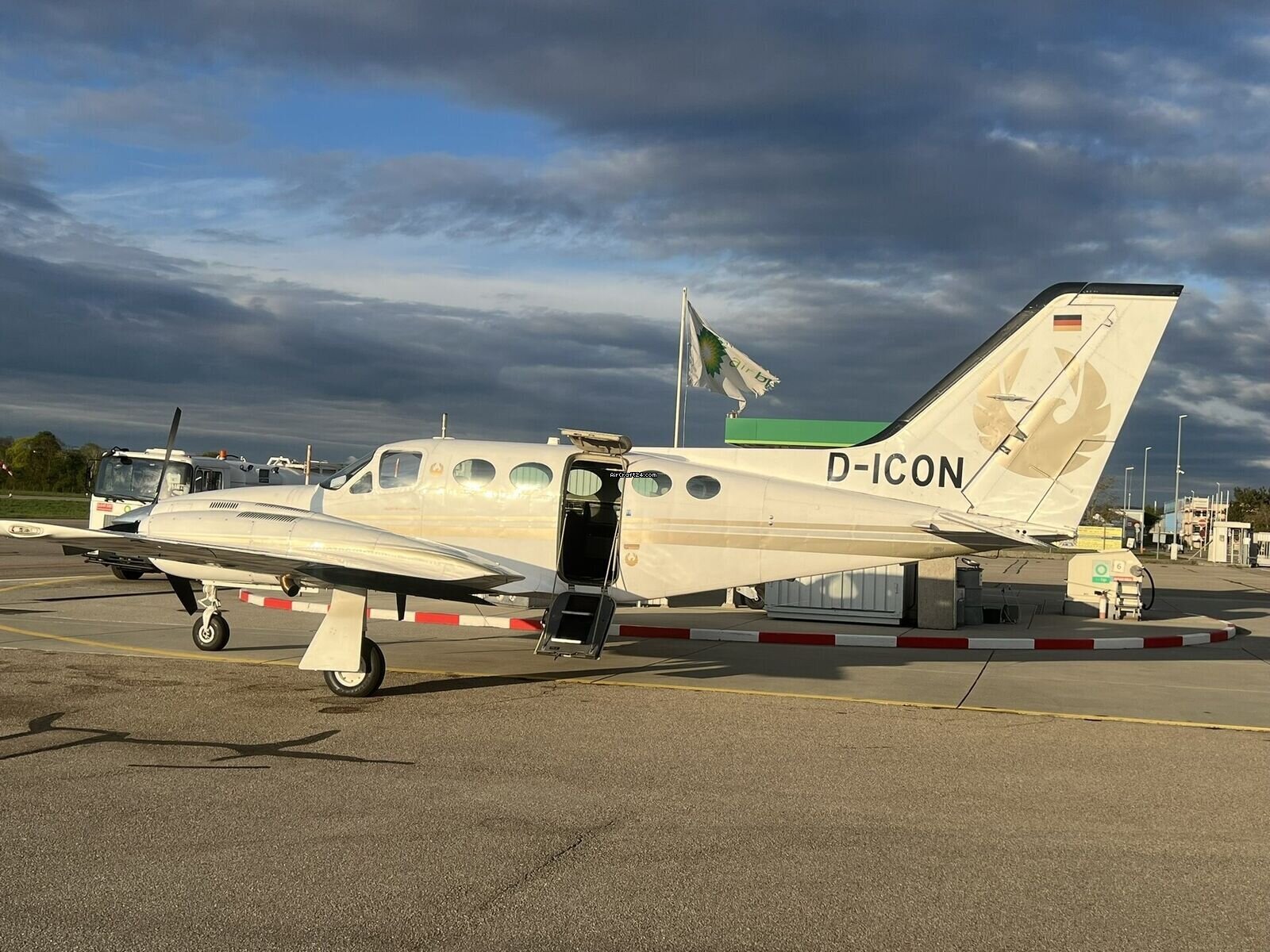 | Base data | | Type: | Multiprop | | Make: | Cessna | | Model: | 421C Golden Eagle | | Year built: | 1981 | | Registration No.: | D-ICON | | Serial No.: | 421C-1062 | | Attributes: | IFR certified IFR equipped Always hangared Commercially registered EU-OPS 1 registered | | Location: | Germany, Augsburg | | Total Time (TTAF): | 5242 h | | Price: | € 390,000 | | No. of passengers: | 7 | | Landings: | 4578 |