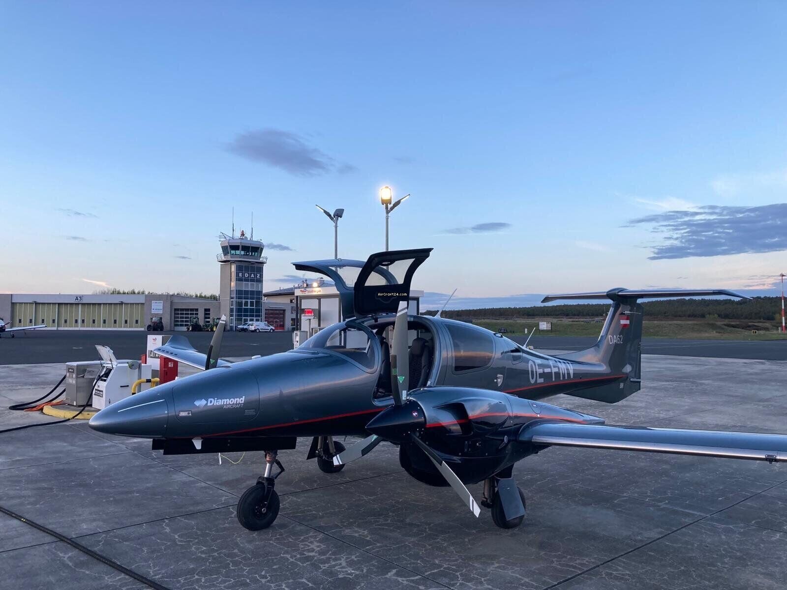 | Base data | | Type: | Multiprop | | Make: | Diamond | | Model: | DA62 | | Year built: | 2024 | | Registration No.: | OE-FMV | | Serial No.: | 62.264 | | Attributes: | IFR certified IFR equipped Always hangared | | Location: | Germany, Schönhagen, EDAZ | | Total Time (TTAF): | 100 h | | Price: | € 1,487,500 | | Net-price: | € 1,250,000 |