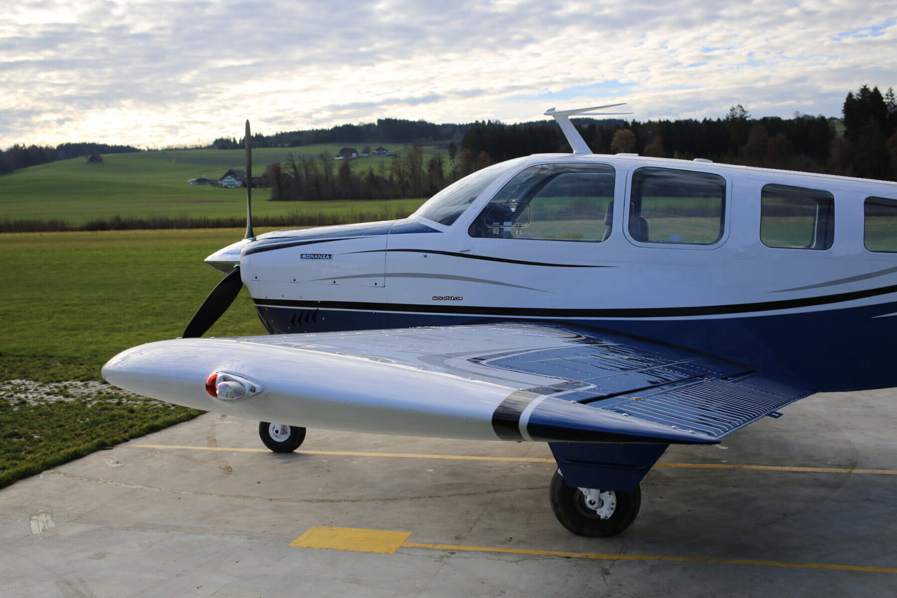 | Base data | | Type: | Single Prop | | Make: | Beechcraft | | Model: | 36 | | Year built: | 1968 | | Registration No.: | TBD | | Serial No.: | E-118 | | Attributes: | IFR certified IFR equipped Always hangared | | Last annual: | 12/2025 | | Location: | Switzerland, Luzern, LSZO | | Total Time (TTAF): | 5685 h | | Price: | CHF 436,500 (~ € 468,649) | | EU VAT paid: | no | | VAT stated sep.: | yes (8%) | | No. of passengers: | 5 |